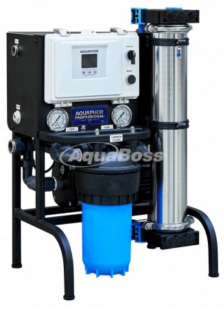 Контроллер, система коммутации и управления Aquaphor® с цветным ЖК экраном Высококачественный многоступенчатый центробежный насос Grundfoss® Высококачественный сверхпрочный корпус предфильтрации Aquaphor Gross® Сменный модуль Aquaphor CarbonBlock, изготовленный из высококачественного активированного кокосового угля и волокна Aqualen® Энергосберегающая экстра-низконапорная высокоселективная мембрана производства Aquaphor Professional®