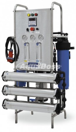 Рама и панель приборов из нержавеющей стали Многоступеньчатый центробежный насос производства Hydroo и/или Grundfoss Контроллер управления, совмещенный с монитором электропроводности очищенной воды, оснащенный качественным электродом из нержавеющей стали 316 Высокоселективные мембраны Глицеринонаполненные манометры Двойной контроль и отключение по низкому давлению Двойная предфильтрация на фильтрах Gross Игольчатые регулировочные вентили и резьбовые фитинги из 316 нержавеющей стали Бесшовные трубы высокого давления из 316 нержавеющей стали Бесшовные корпуса мембран из нержавеющей стали с боковыми входами Магистрали низкого давления выполнены из ПВХ Кран с сервоприводом промывки дренажа производства Belimo и/или Comporato Nello